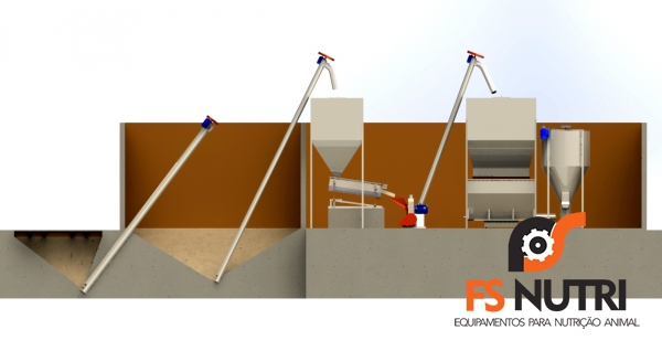 Neste conjunto podemos visualizar a automatização do processo através de rosca helicoidal na descarga dos grãos, no carregamento e dosagem do moinho.